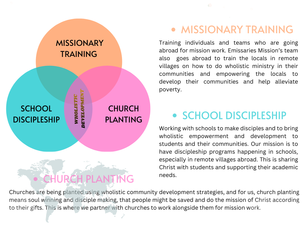 Emissaries Mission believes that Jesus’ mission to us is a collaborative effort and is wholistic. That is why we partner with other mission agencies, churches, and missionaries to continue the mission of Christ together.